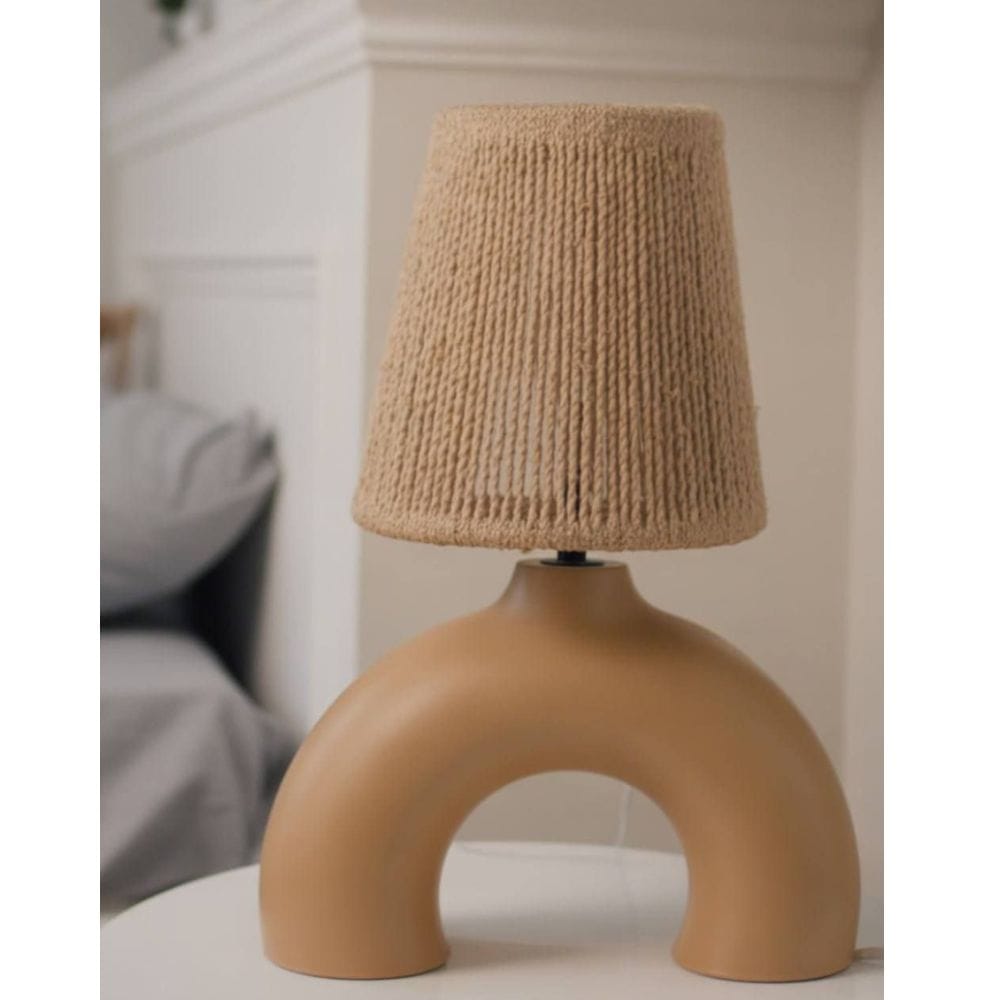 کلاهک آباژور کوتاه کرمی از جنس کنفی بافته شده از الیاف کنف است که بافتی طبیعی، گرم و زیبا دارد. این نوع کنف به دلیل ساختار طبیعی و استفاده از نخ‌های مقاوم کنفی، نه تنها نمایی دلنشین و متفاوت ایجاد می‌کند بلکه نوری ملایم و یکنواخت را از خود عبور می‌دهد که فضای اطراف آباژور را آرامش‌بخش می‌کند. این بافت کنفی، جلوه‌ای هنری و خاص به آباژور رومیزی کرمی می‌بخشد که مناسب انواع سبک‌های دکوراسیون به ویژه مینیمال و مدرن است.